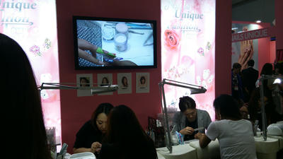 会場では、エリコネイルとかネイルズユニークなど、ネイリストスクール